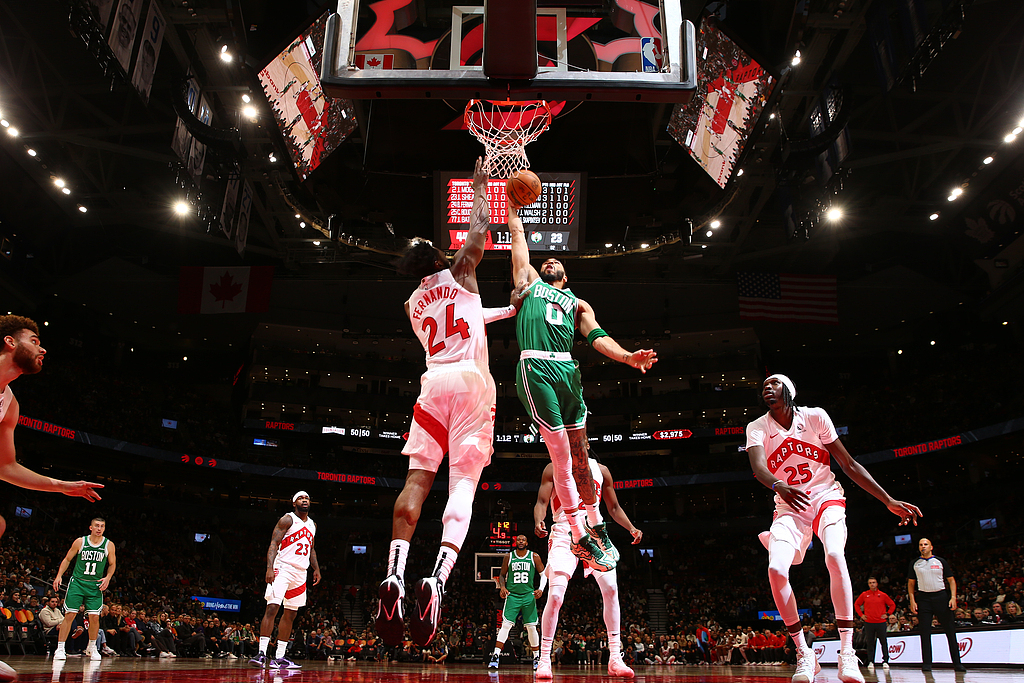 After swapping sides, the third quarter brought a shift in momentum. Both teams engaged in a perimeter "exchange," but the Celtics' shooting went cold, converting only 4 of 16 attempts, while the Raptors also shot poorly, making 3 of 12. However, the Raptors' interior scoring was highly efficient, nearly every basket inside finding the net, battering the Celtics' defense near the rim. The Raptors outscored the Celtics 31-19 in the quarter, taking a 12-point lead; after three quarters the score stood at 84-97, with the Raptors ahead by 13.