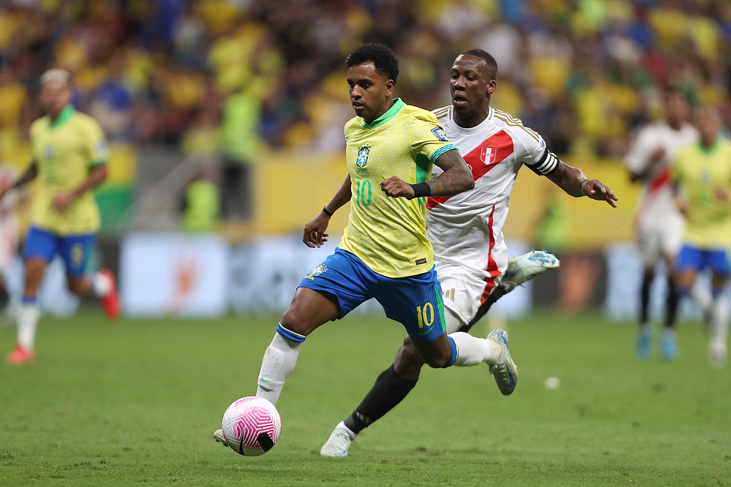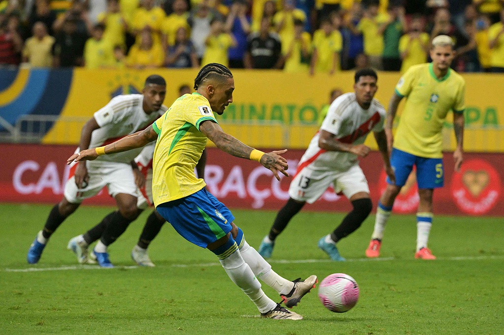 In the 38th minute, Brazil's attack finally yielded a goal. Igor Jesus's lifted ball in the box struck a Peruvian player's hand, earning a penalty; Rafinha calmly converted, putting Brazil ahead 1-0. After scoring, Brazil's players surged in morale and intensified their attacks, but no further goals were added before halftime.