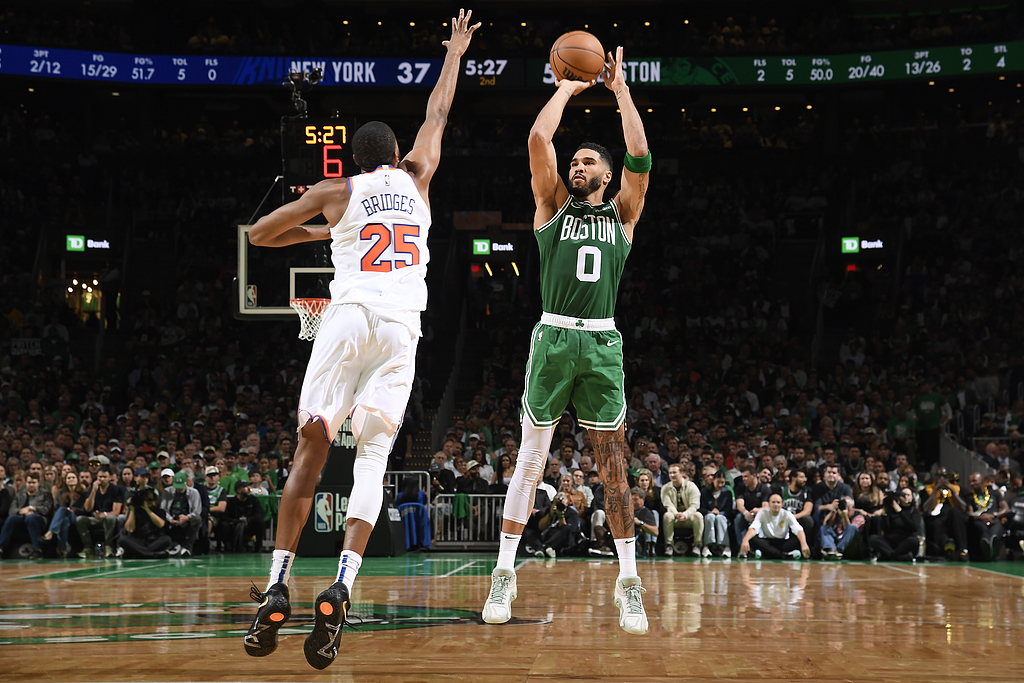 In the first quarter, the Celtics unleashed full firepower, showcasing their reputation as a "three-point squad" to an extreme degree. They疯狂 launched 17 three-point attempts, hitting 10, scoring 30 points alone from beyond the arc! Tatum was particularly efficient, making 5 of 7 shots, including 4 of 6 three-pointers for 15 points, plus 3 rebounds and 5 assists. Led by him, the Celtics went wild in the first quarter, racking up 43 points! The Knicks were completely overwhelmed, managing only one three-pointer and forced to focus on attacking inside. By the end of the quarter, the Celtics led 43-24 by 19 points, with the gap一度 reaching 25 points at its peak.