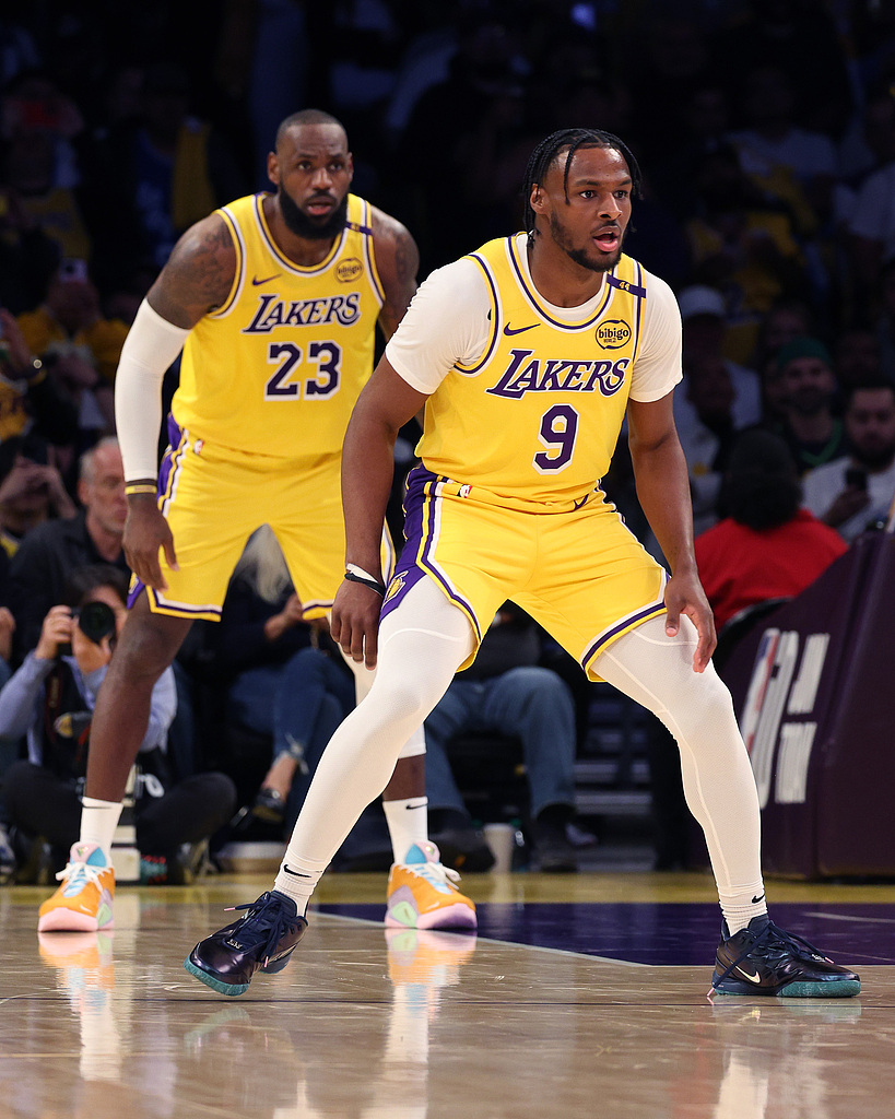 The second quarter saw a dramatic shift; the Timberwolves lost their way, with poor shooting spreading. The Lakers grew increasingly fierce, frequently executing fast breaks. Rookie Knecht, after entering the game, showed great energy. Even without LeBron on the court, the whole team charged with intense vigor on both offense and defense. After the lead stretched to 19 points, a historic moment arrived: LeBron and Bronny appeared together as substitutes, prompting cheers from the entire arena as fans captured the moment on their phones! LeBron immediately attempted a three-pointer but missed. At halftime, the Lakers led 55-42 by 13 points.