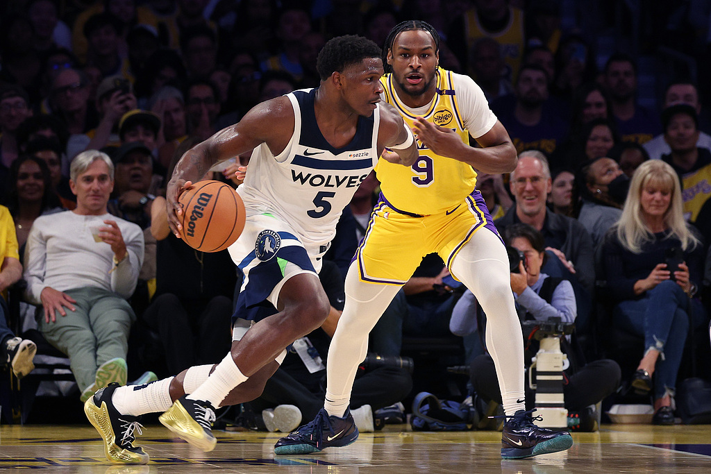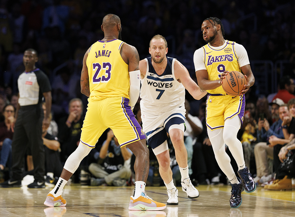 After switching sides, both teams maintained high defensive intensity. The Timberwolves' offense remained disjointed; Edwards and Randle clearly lacked chemistry, often resorting to isolation plays. The Lakers' offense also lost the fluidity of the second quarter, creating few outside shooting opportunities and struggling with their touch. Davis' interior post-ups faced tight defense from Gobert. Both teams scored only 8 and 9 points respectively in the first half of the quarter. However, in the latter half, both teams' shooting improved, engaging in a physical battle inside. By the end of the third quarter, the Lakers led 82-74 by 8 points.