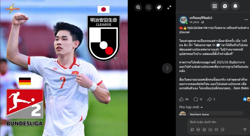 Additionally, Thai media indicated that the 2004-born striker is likely to go abroad after the 2025/26 season concludes, aiming to “lay the foundation for the next generation of Vietnamese football players”.