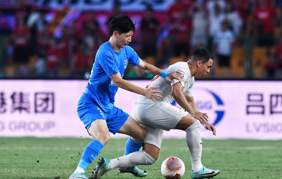 After the start of the match, Rongcheng displayed their superior strength, firmly controlling possession, but they created few shooting opportunities. In the 19th minute, Xue Qinghao parried a high ball, Felipe headed in a rebound at the goalmouth, but the goal was disallowed due to a teammate's offside position; in the 25th minute, Rongcheng launched a quick counterattack, Romulo carried the ball forward with teammates spreading wide on both sides, but he ultimately chose a long-range shot which was blocked and went out for a corner.