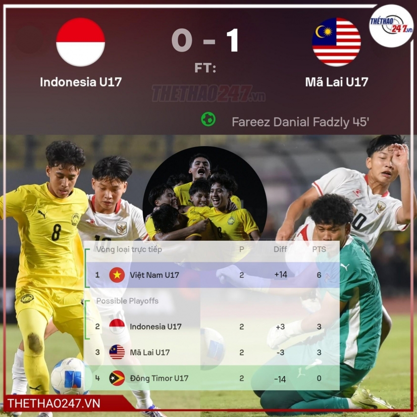 This victory temporarily places Malaysia U17 in third position in Group A, and also makes the group standings more intriguing. Meanwhile, Vietnam U17 holds a significant advantage in the race for a semifinal spot after two full wins.