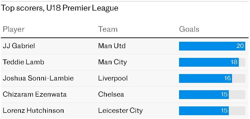 Ultimately, Gabriel scored twice, helping Manchester United defeat Middlesbrough 5-0. Since then, his scoring momentum has not stopped. Last Saturday, Manchester United U18 beat Leeds United's youth team 2-0, with him also scoring a goal, placing him top of the Premier League U18 scoring chart, ahead of many older opponents.