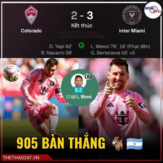 This victory helps Inter Miami climb to second place in the MLS Eastern Conference, simultaneously ending Colorado Rapids' 8-match unbeaten streak at home. In a week full of turbulence, the pink-clad team demonstrated resilience, with Messi continuing to be the greatest pillar both professionally and spiritually.