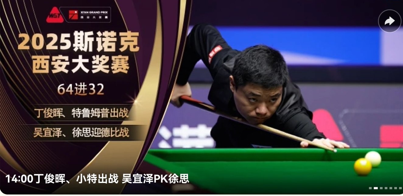 The Snooker Xi'an Open schedule for today (2025.10.8) features Zhao Xintong, Ding Junhui, O'Sullivan, Trump, Selby, and other world-renowned players, with live coverage on CCTV-5, Migu Video, and Huya Live.