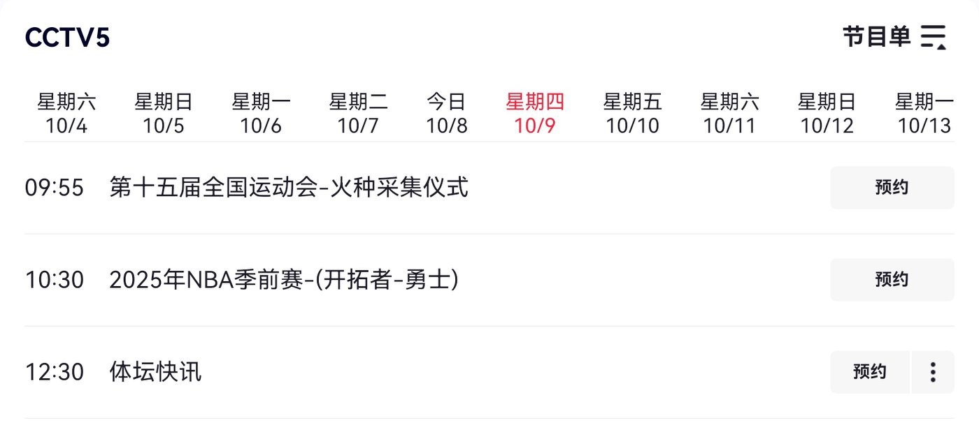 The CCTV-5 live broadcast plan is illustrated in the image below.