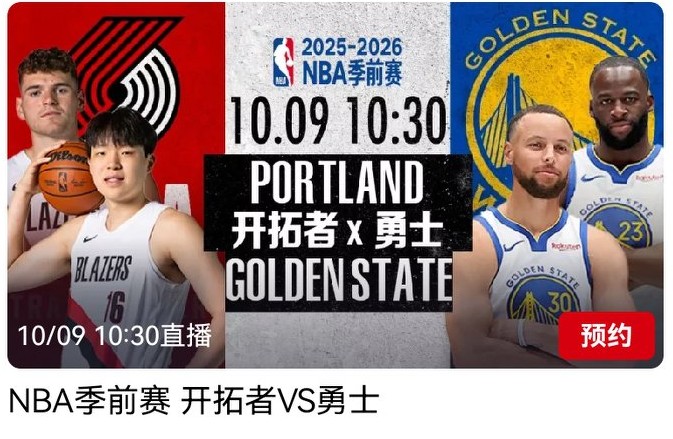 NBA schedule for tomorrow (2025.10.9): Trail Blazers vs. Warriors, Yang Hansen set to play, live on CCTV-5.