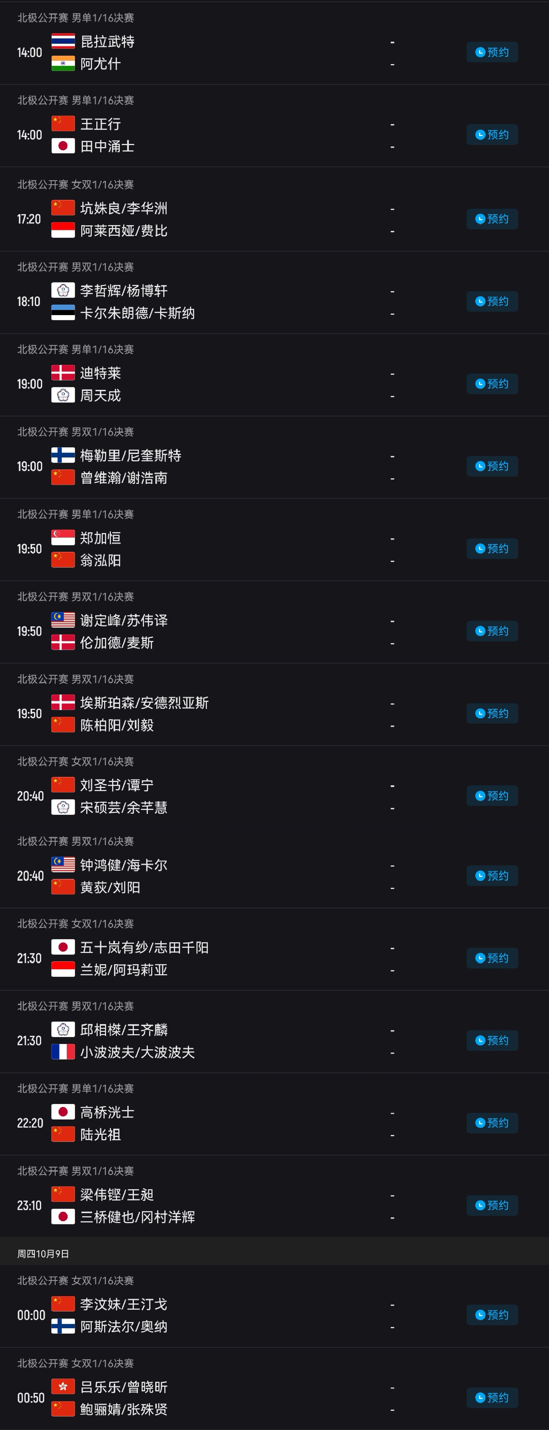 The Badminton Arctic Open schedule for today (10.8): Weng Hongyang, Shengtang, and the Liang-Wang pair are competing, live on Youku.