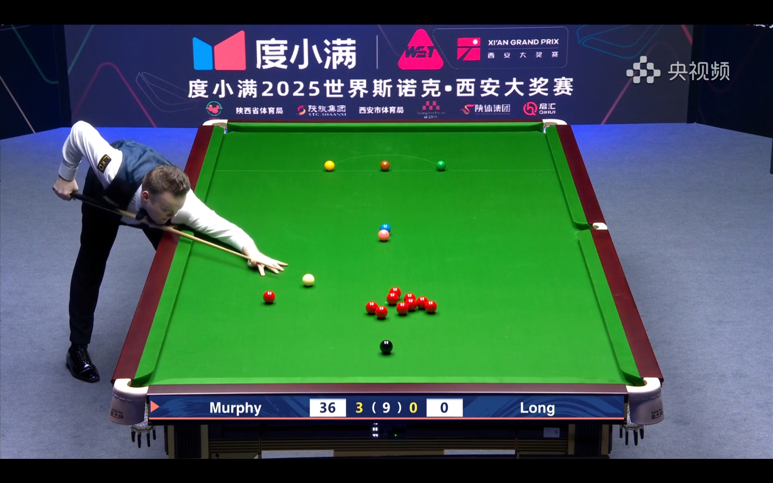 Another live match shows Shaun Murphy leading Long Zehuang 3-0. They are currently in the fourth frame, with Murphy ahead 36-0.