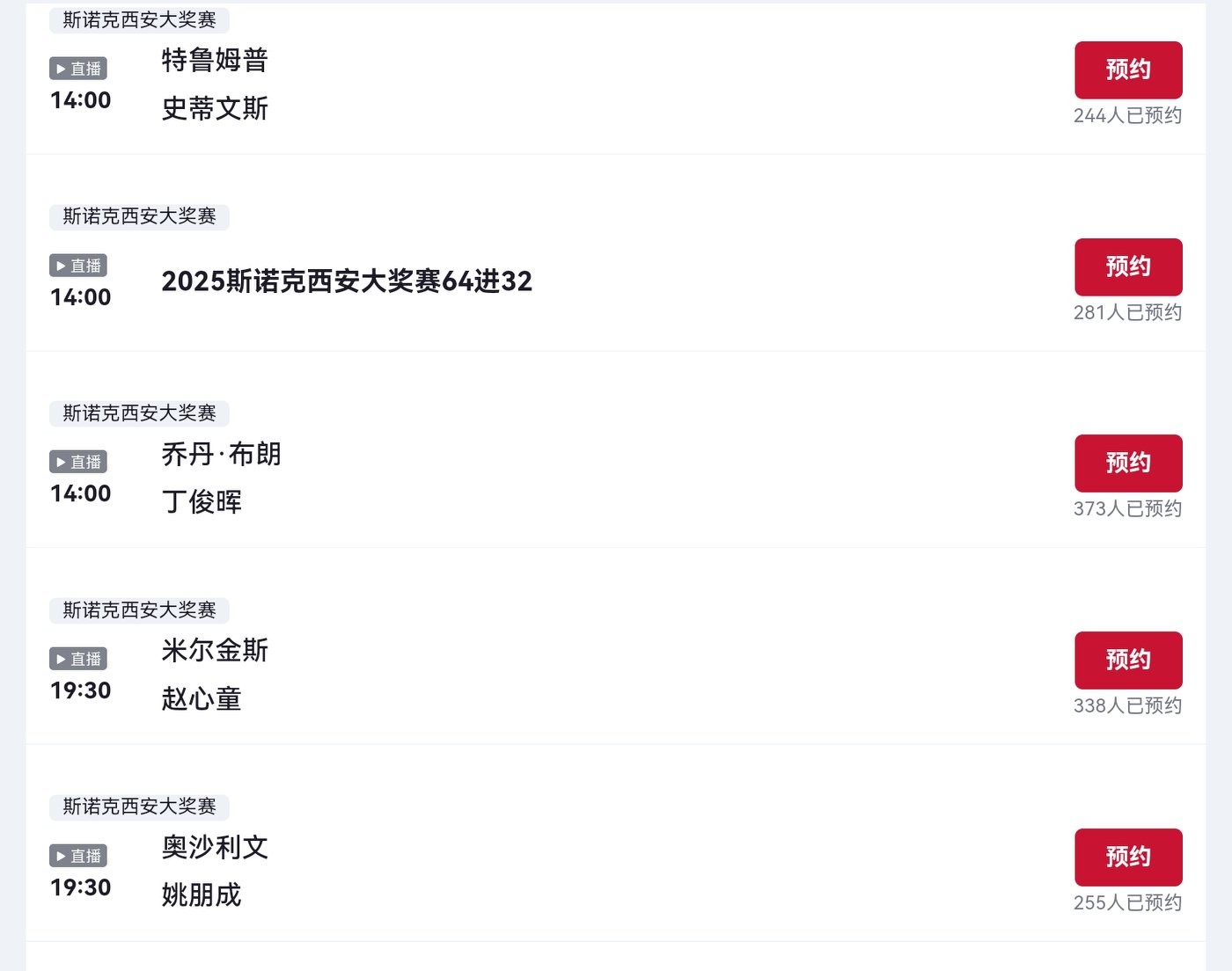 CCTV Video and Huya streaming platforms are providing free live coverage of the Snooker Xi'an Open matches featuring Si Jiahui vs. Fan Zhengyi and Murphy vs. Long Zehuang. Additionally, today's CCTV Video broadcast schedule is included.