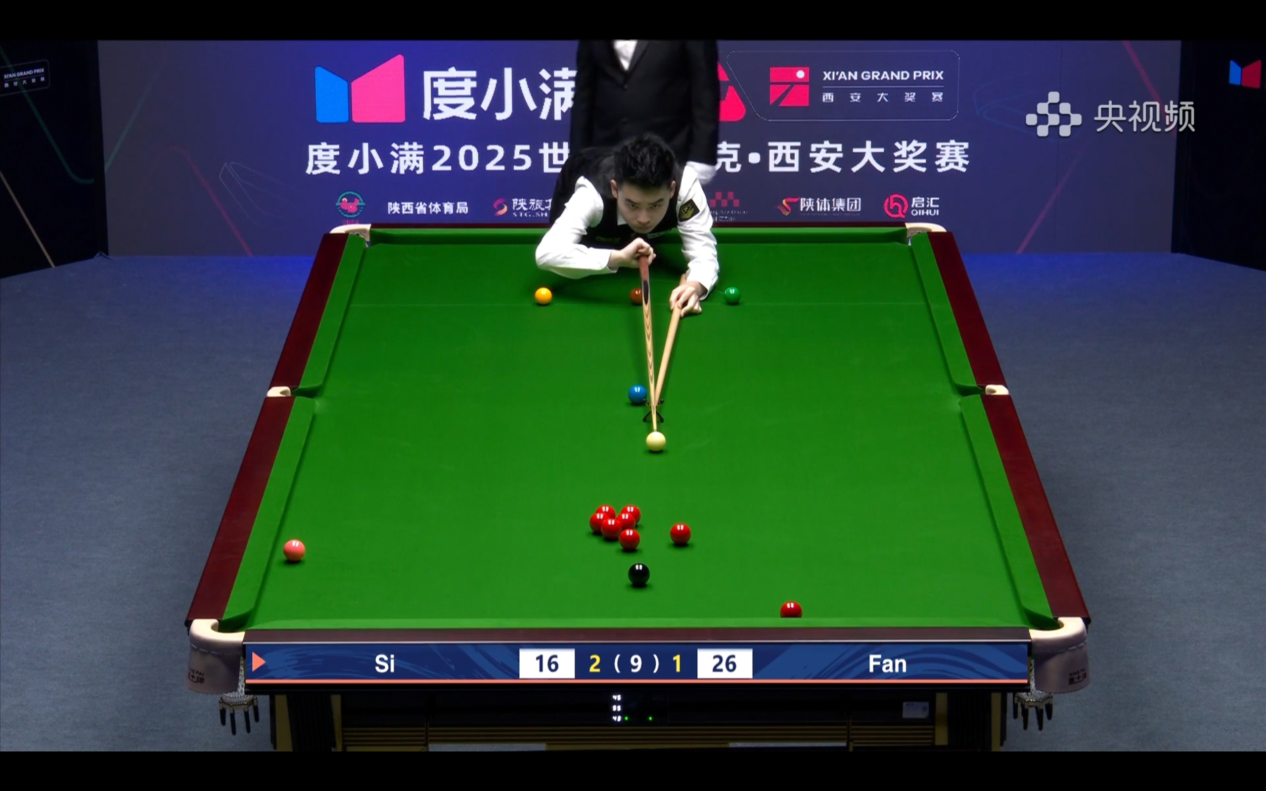 The first match being broadcast follows a best-of-nine frames format. Si Jiahui holds a 2-1 lead over Fan Zhengyi. They are currently in the fourth frame, with the score at 16-26, trailing Fan Zhengyi.