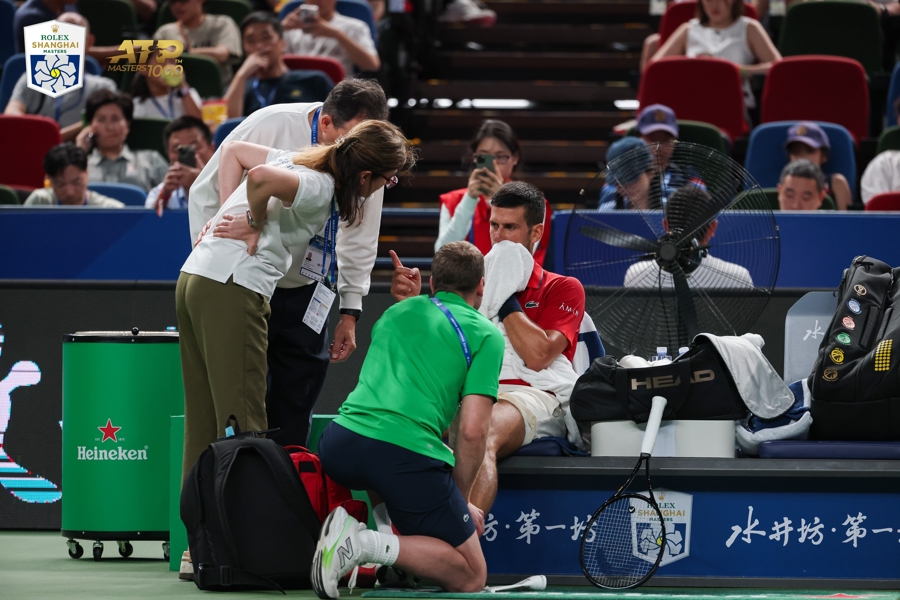 Just when it seemed the tense moments of the first set had passed, the intense Shanghai heat took its toll, and after only five games in the second set, another incident occurred.