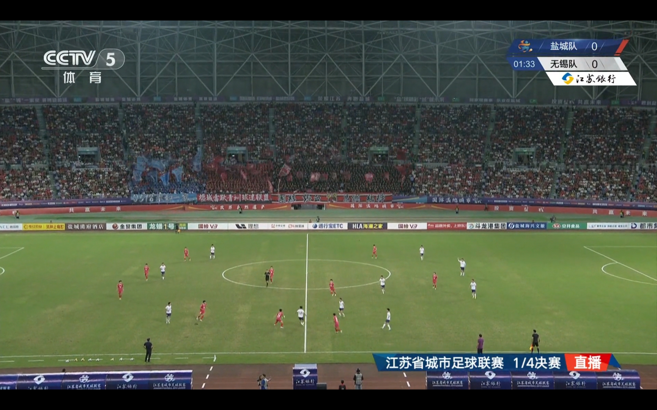 CCTV-5 and Yangshipin are live streaming the Suzhou Super League quarterfinal between Yancheng and Wuxi.