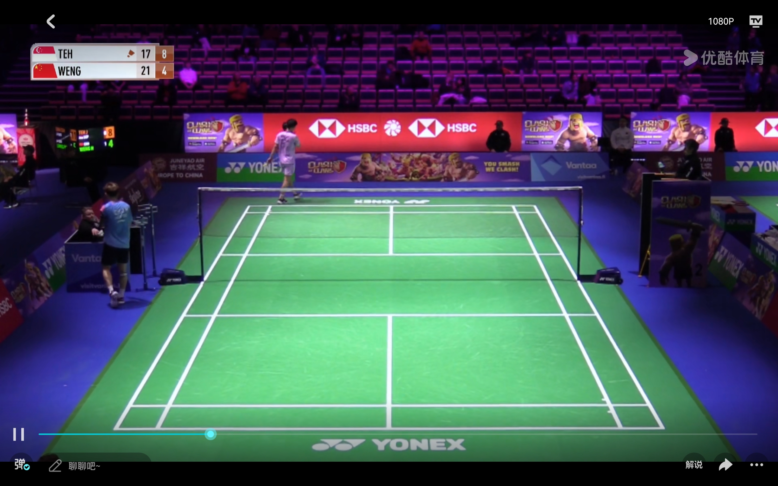 Yangshipin and Youku are live streaming the Badminton Arctic Open match between Weng Hongyang and Zheng Jiaheng.