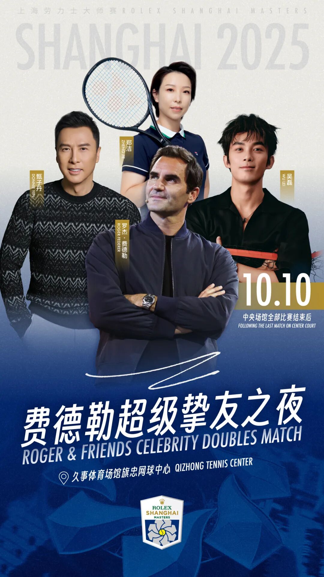 Today, Federer will make a grand appearance, teaming up with Donnie Yen, Wu Lei, and Zheng Jie to deliver an exciting doubles exhibition match.