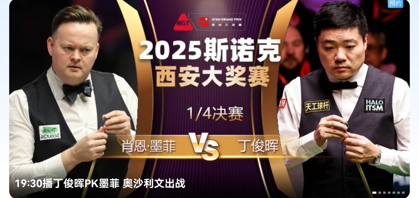 Additionally, at 7:30 PM tonight, Ding Junhui will face Shaun Murphy, with slim chances for victory. The match will be broadcast live on CCTV Sports, Huya, and Migu Video. Everyone is welcome to watch.