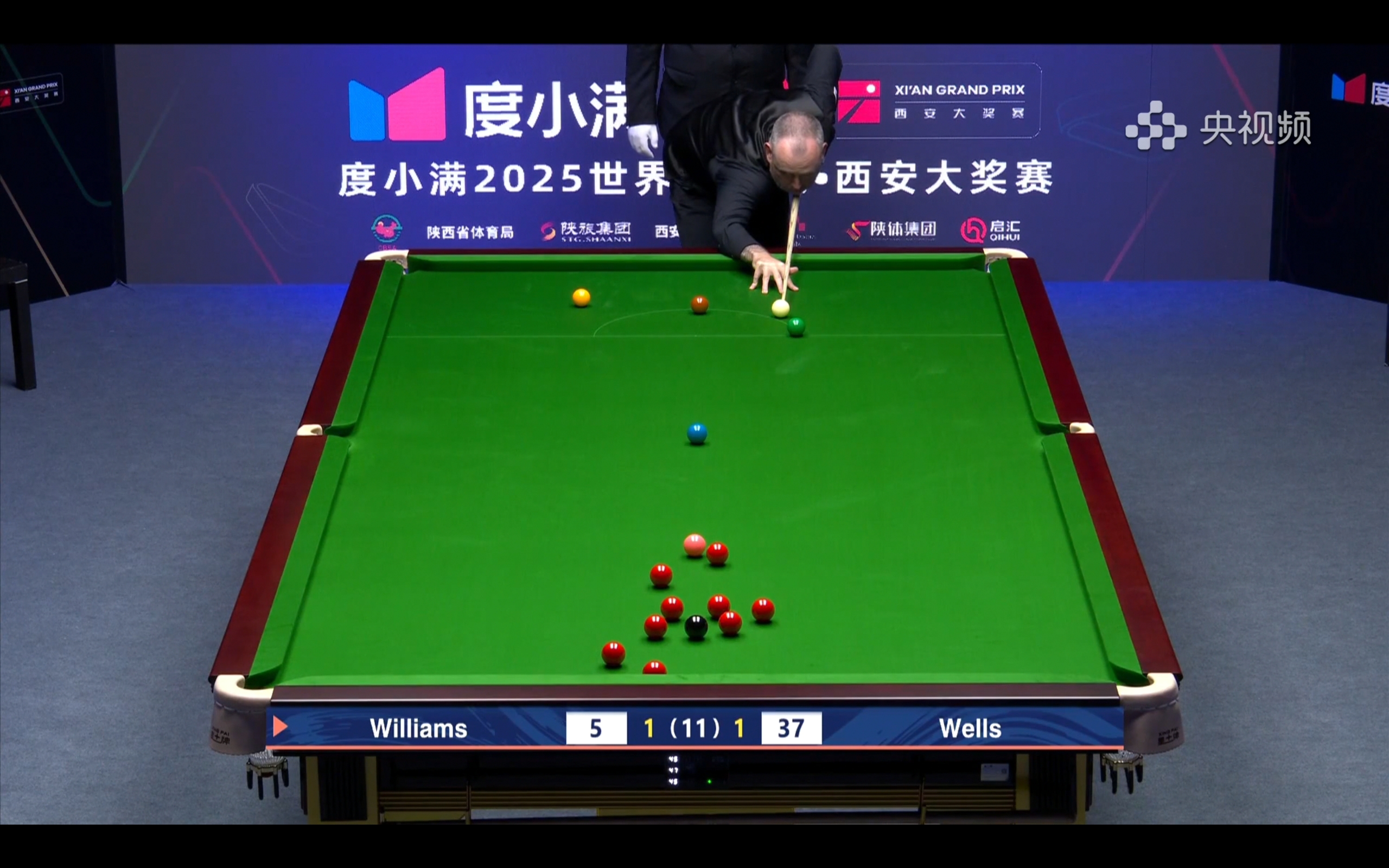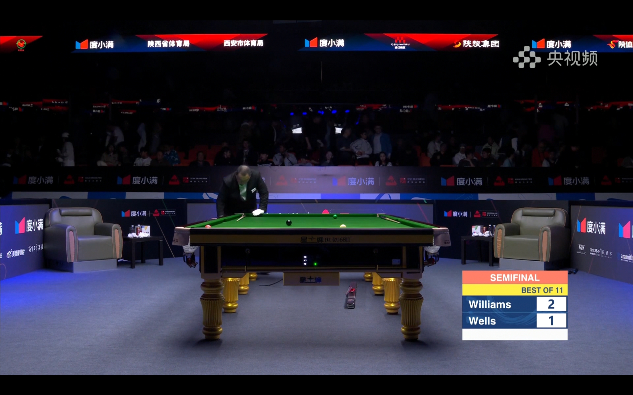 CCTV Video and Migu Video are live streaming the Snooker Xi'an Masters semifinal match between Mark Williams and Wells.