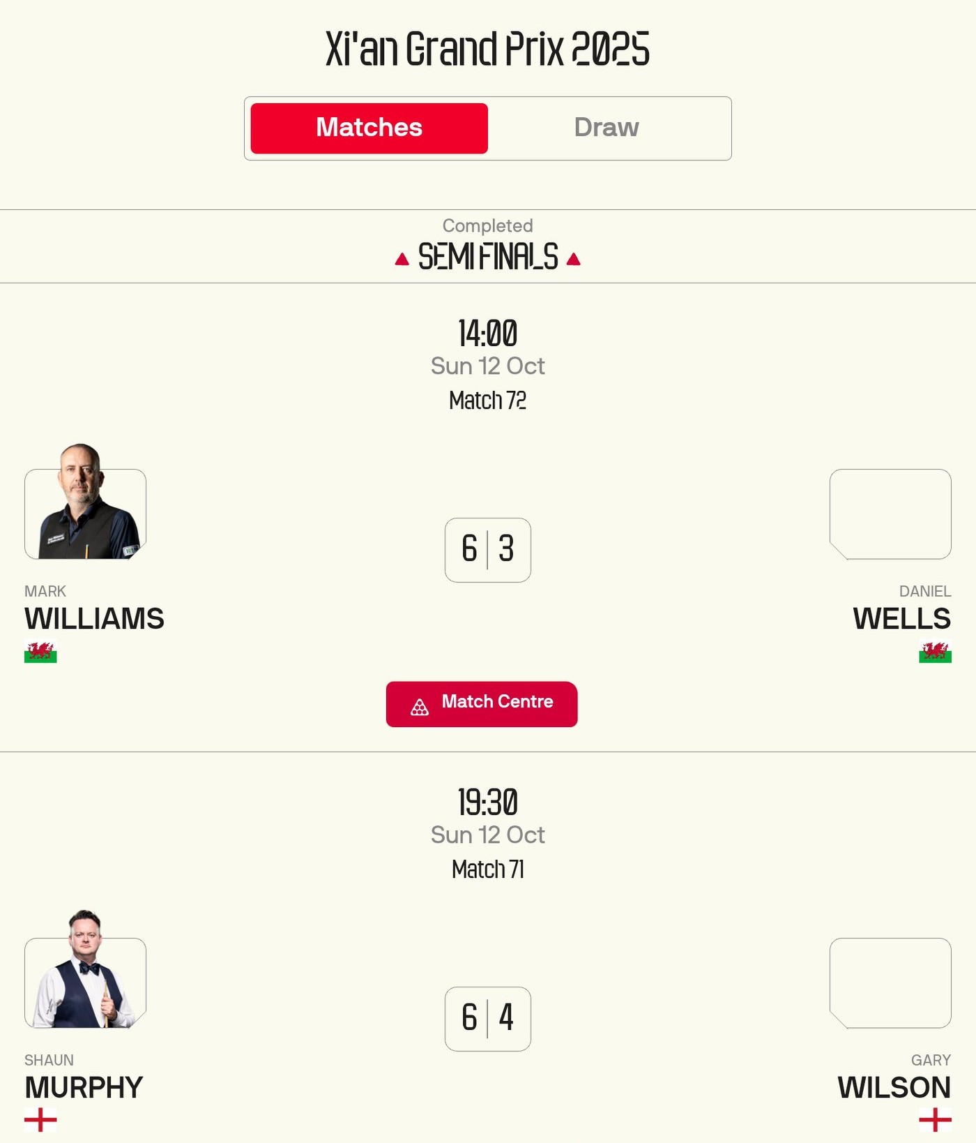 Snooker Xian Masters Report: Shaun Murphy and Mark Williams Advance to the Final