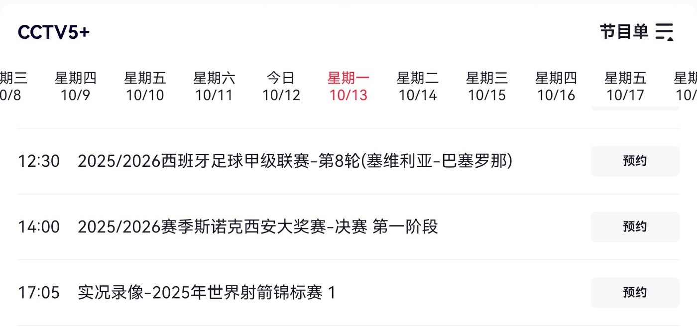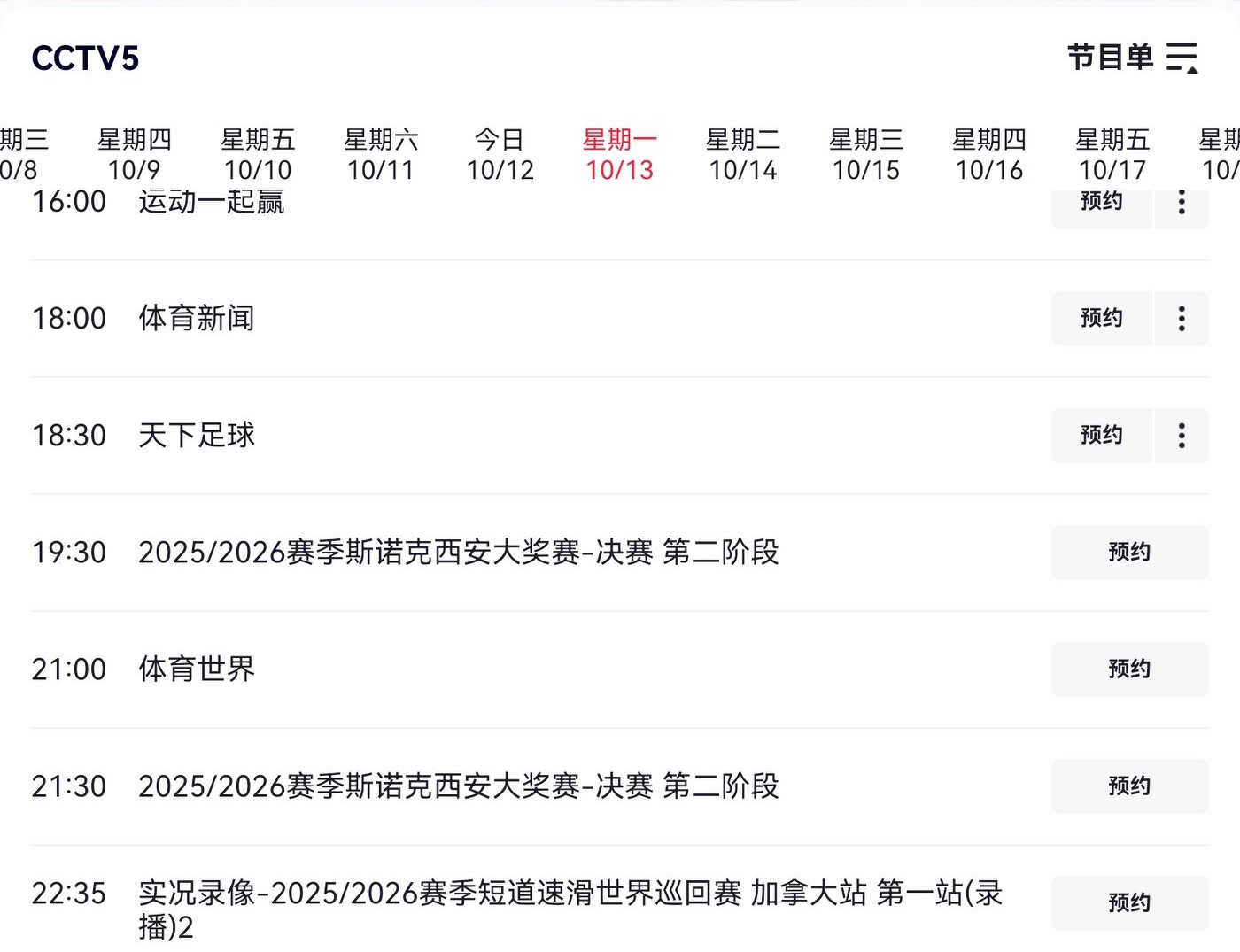 The live broadcast schedule on CCTV-5 and the CCTV app is shown below.
