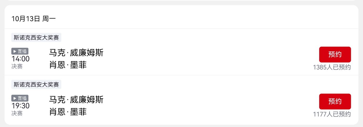The Snooker Xian Masters final is scheduled for tomorrow (2025.10.13), with Williams facing Murphy, live on CCTV-5.