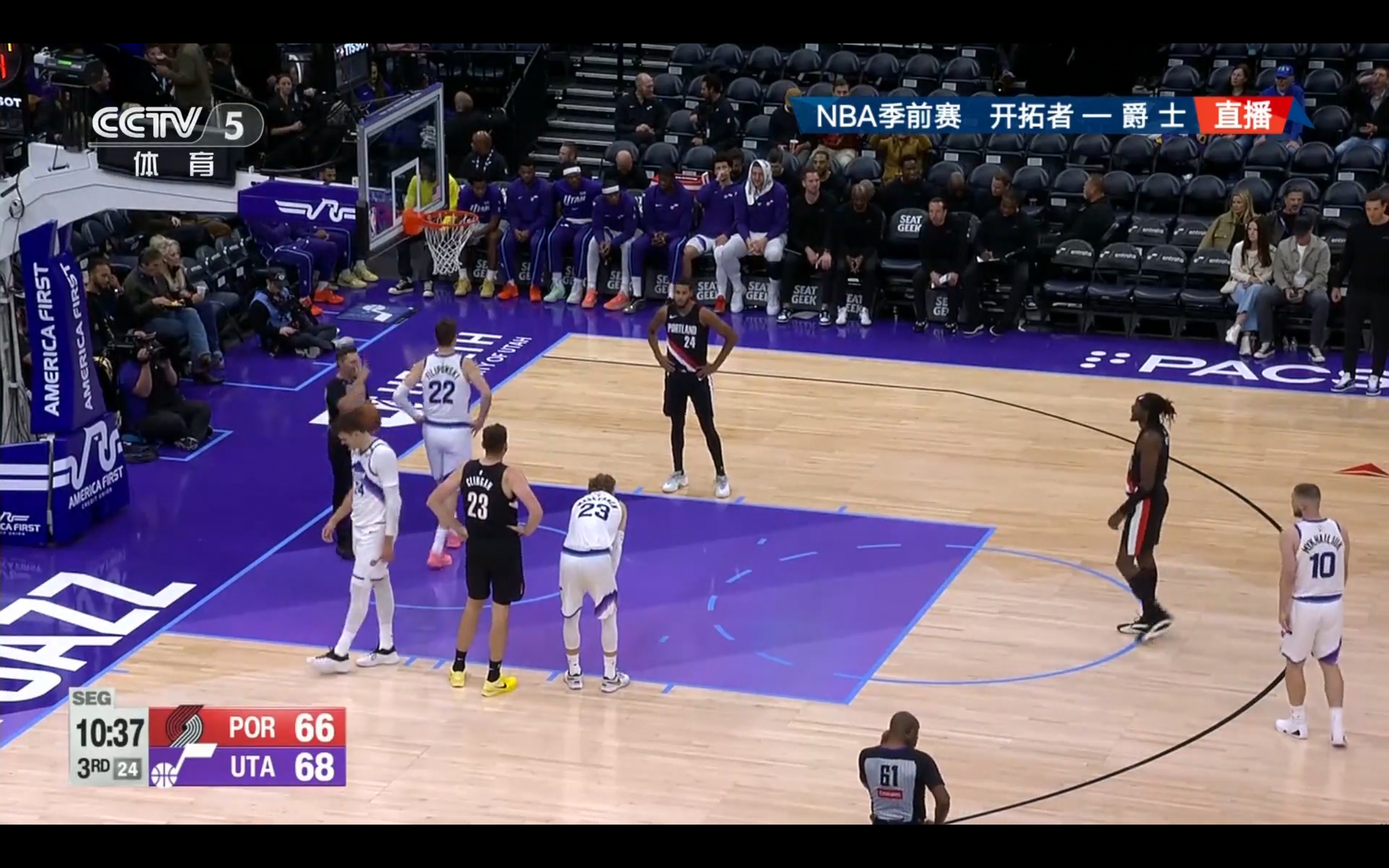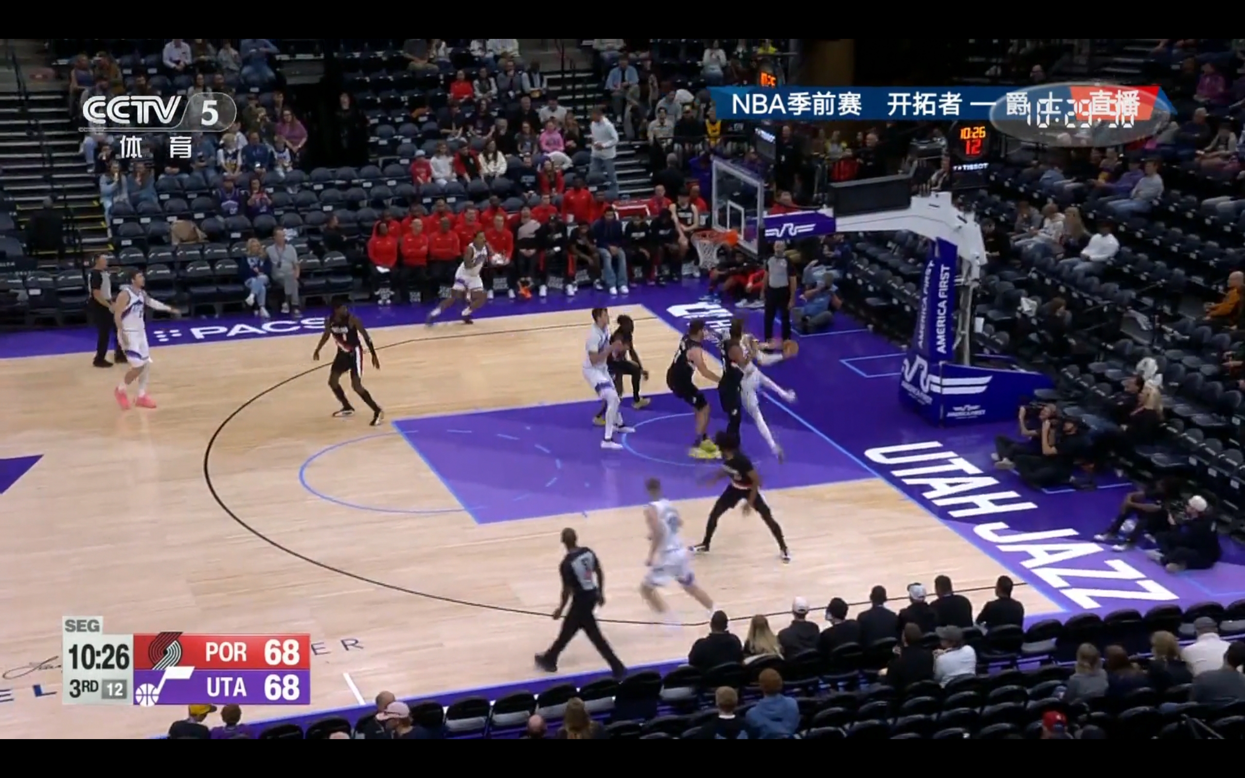 CCTV-5 is airing the NBA preseason matchup between the Trail Blazers and the Jazz.