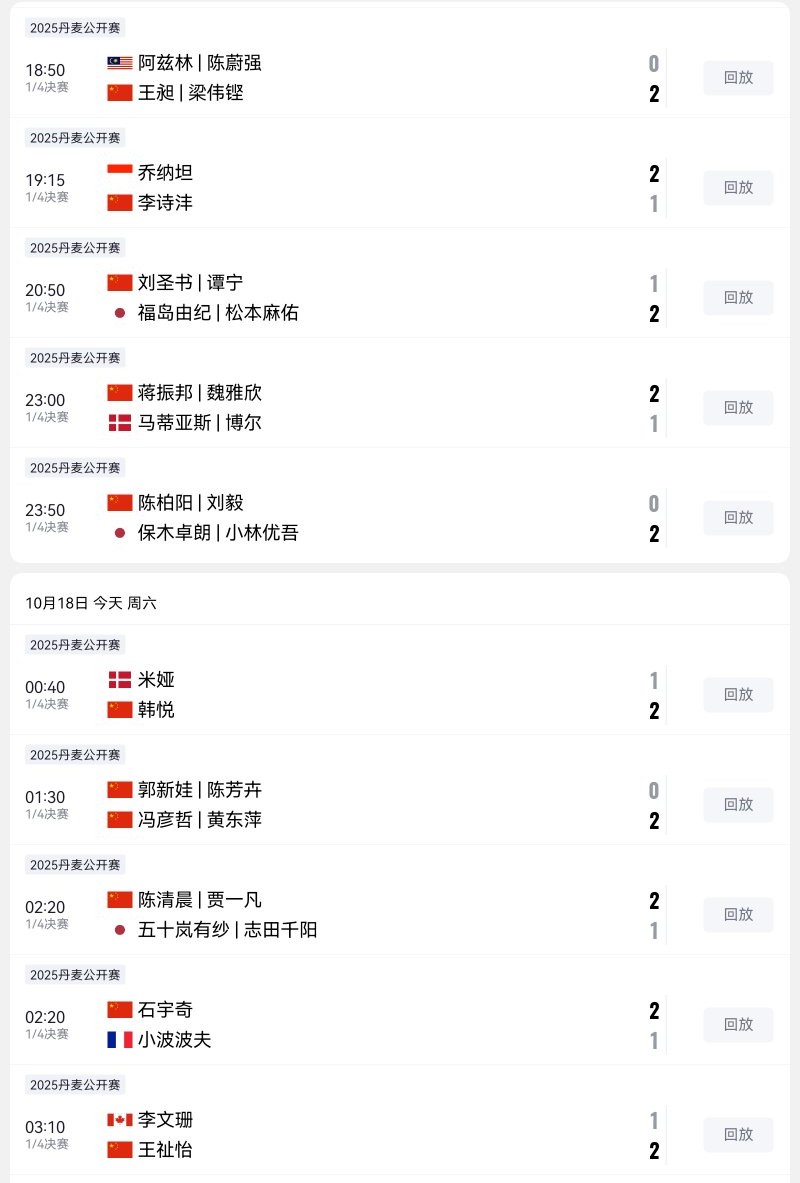 The detailed results of the Chinese team's quarterfinal matches are shown in the chart below.