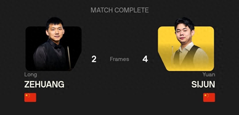 1. Yuan Sijun defeated Long Zehuang 4-2 to move into the last 16.