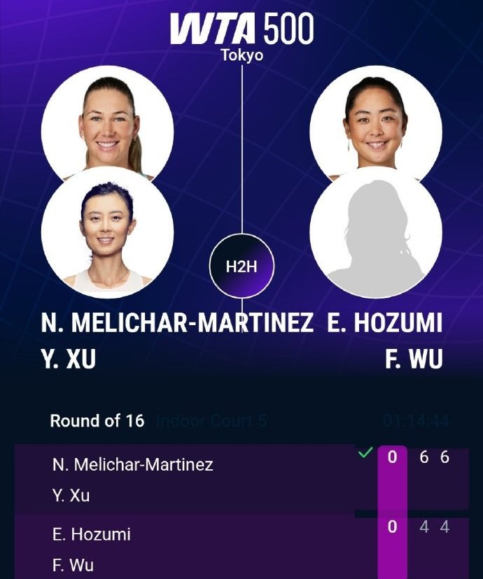 Doubles: In a first-round match, the China-US pair Xu Yifan/Melichar defeated Hori/Wu 6-4, 6-4 to advance to the quarterfinals, where they will face third seeds Danilina/Krunic.