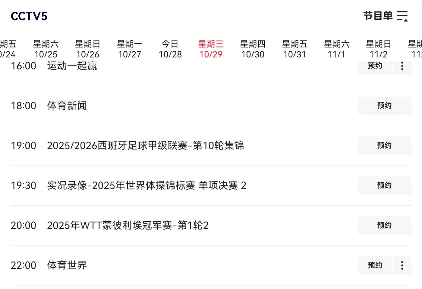 CCTV-5 has announced today's (2025.10.29) live broadcast plan for the WTT Champions Montpellier event, including Kuai Man and Xiang Peng among the competitors.