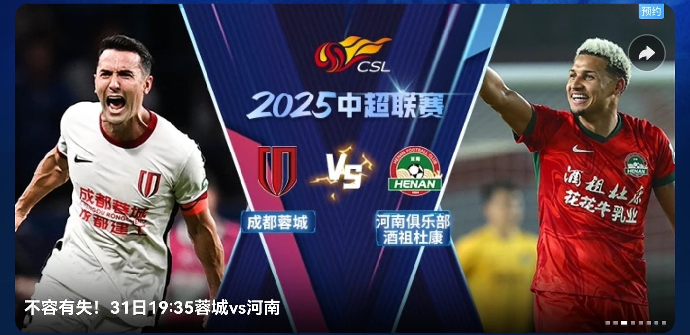 Migu Video will start live streaming the Chengdu Rongcheng against Henan match tomorrow at 7:30 PM.