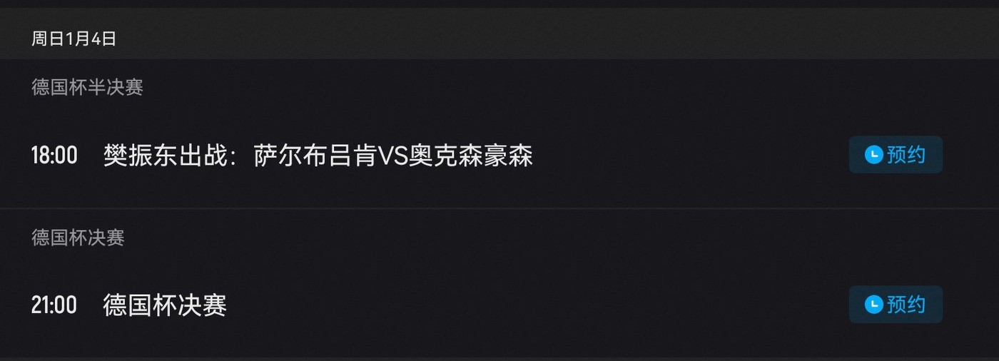 The Table Tennis German Cup semifinals on January 4, 2026, will see Saarbrücken face Ochsenhausen, with Fan Zhendong competing, and the event streamed live on Youku.