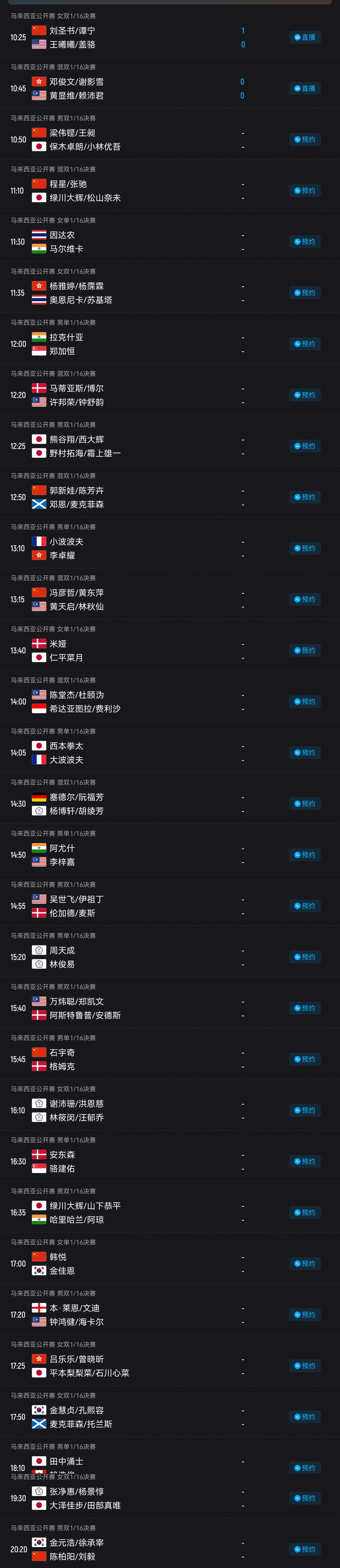 Additionally, here is the schedule for today's Chinese national badminton team matches. The team still has eight matches to play, detailed in the chart below. Let's hope they all win and advance to the next round!