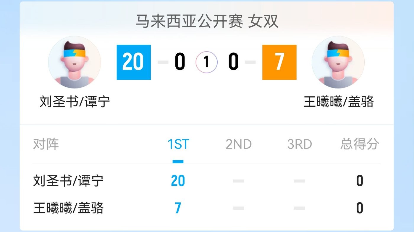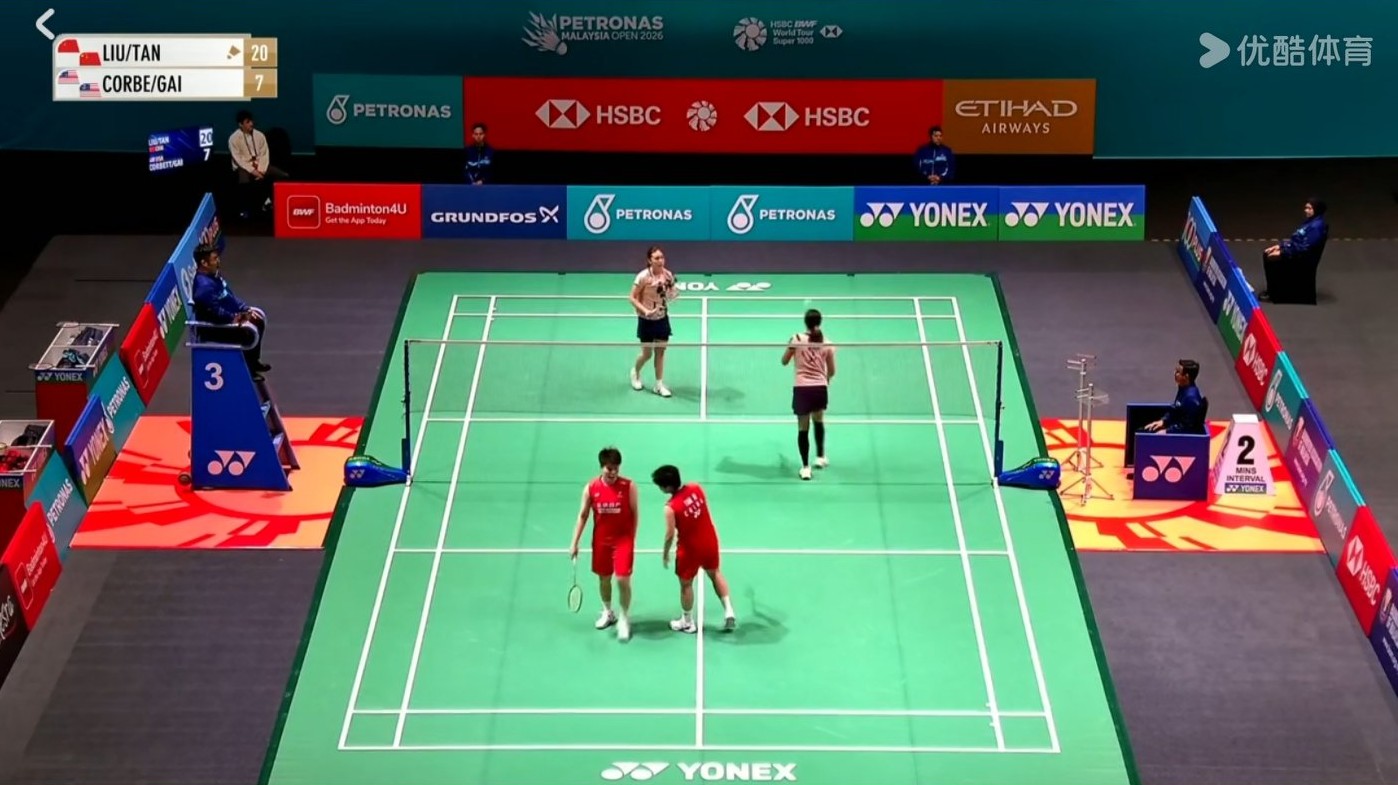 At present, the first game is in progress, with Tan Ning/Liu Shengshu holding a 20-7 lead over Wang Xixi/Gai Luo.