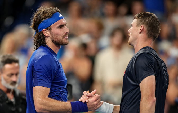 In Group E, Greece defeated Great Britain 2-1, powered by wins from Tsitsipas and Sakari, remaining undefeated with two wins to top the group and advance to the quarterfinals.