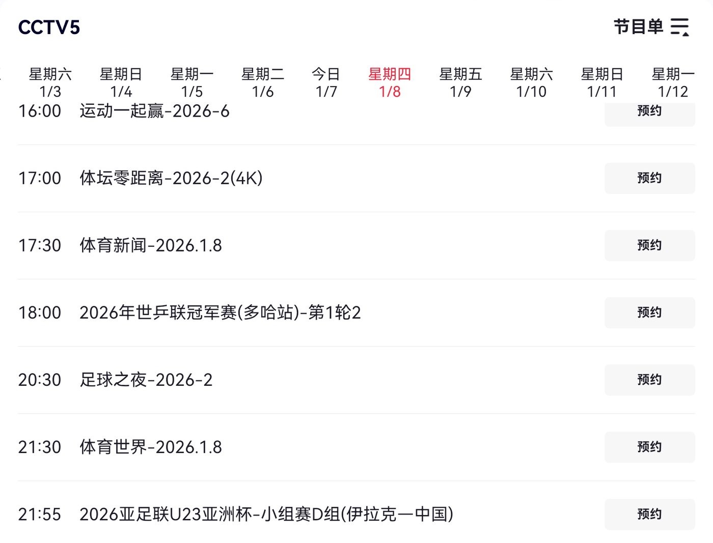 The U23 Asian Cup match tomorrow (2026.1.8) between China and Iraq will be broadcast live on CCTV-5.