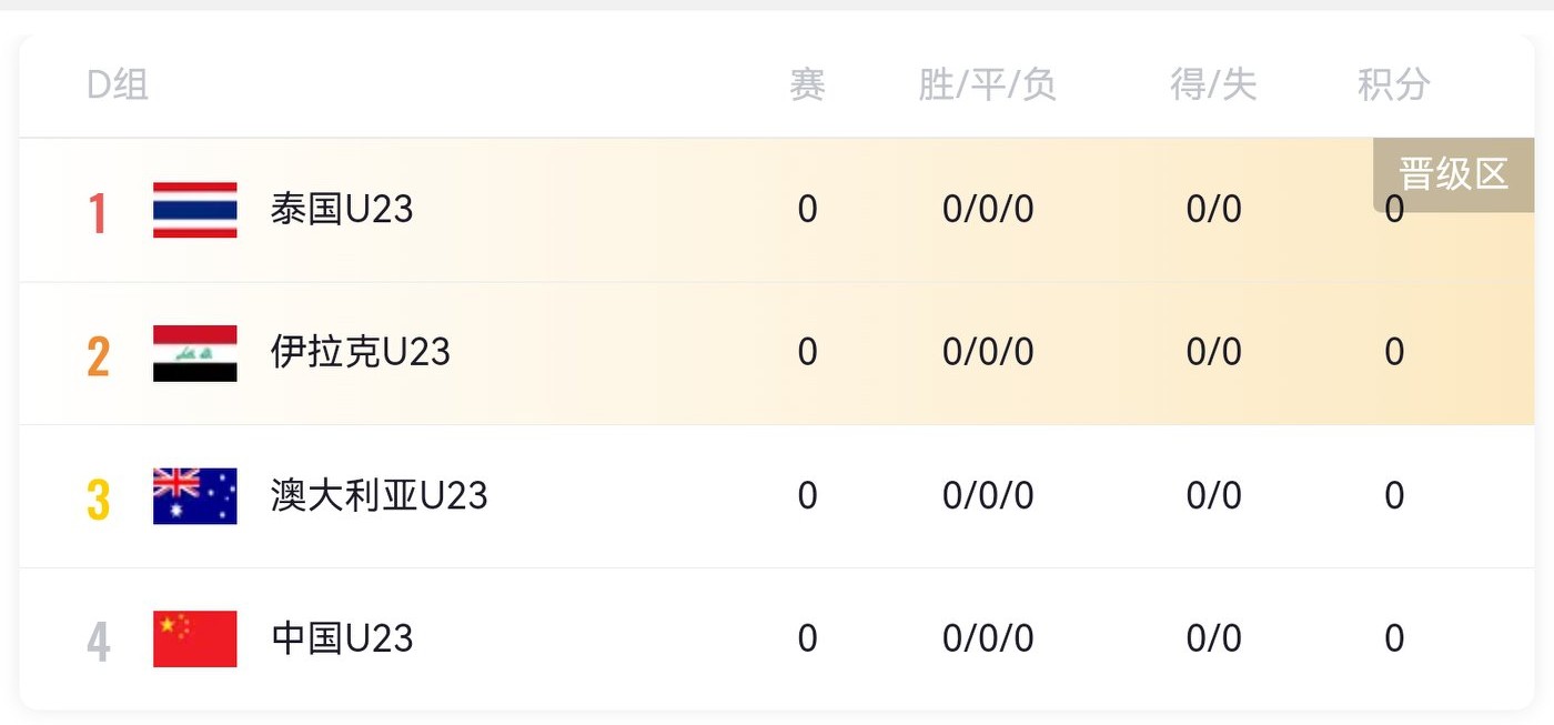 The U23 Asian Cup match schedule for tomorrow (1.8): China vs Iraq, live on CCTV-5.