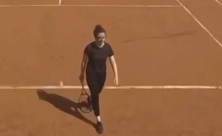 In the humid, nearly 30°C conditions, Abdelkader wore a black T-shirt and tight pants, sharply contrasting with her opponent’s standard tennis attire. She tossed the ball high for serves but repeatedly missed the mark, with a first-serve success rate of only 8.3%.