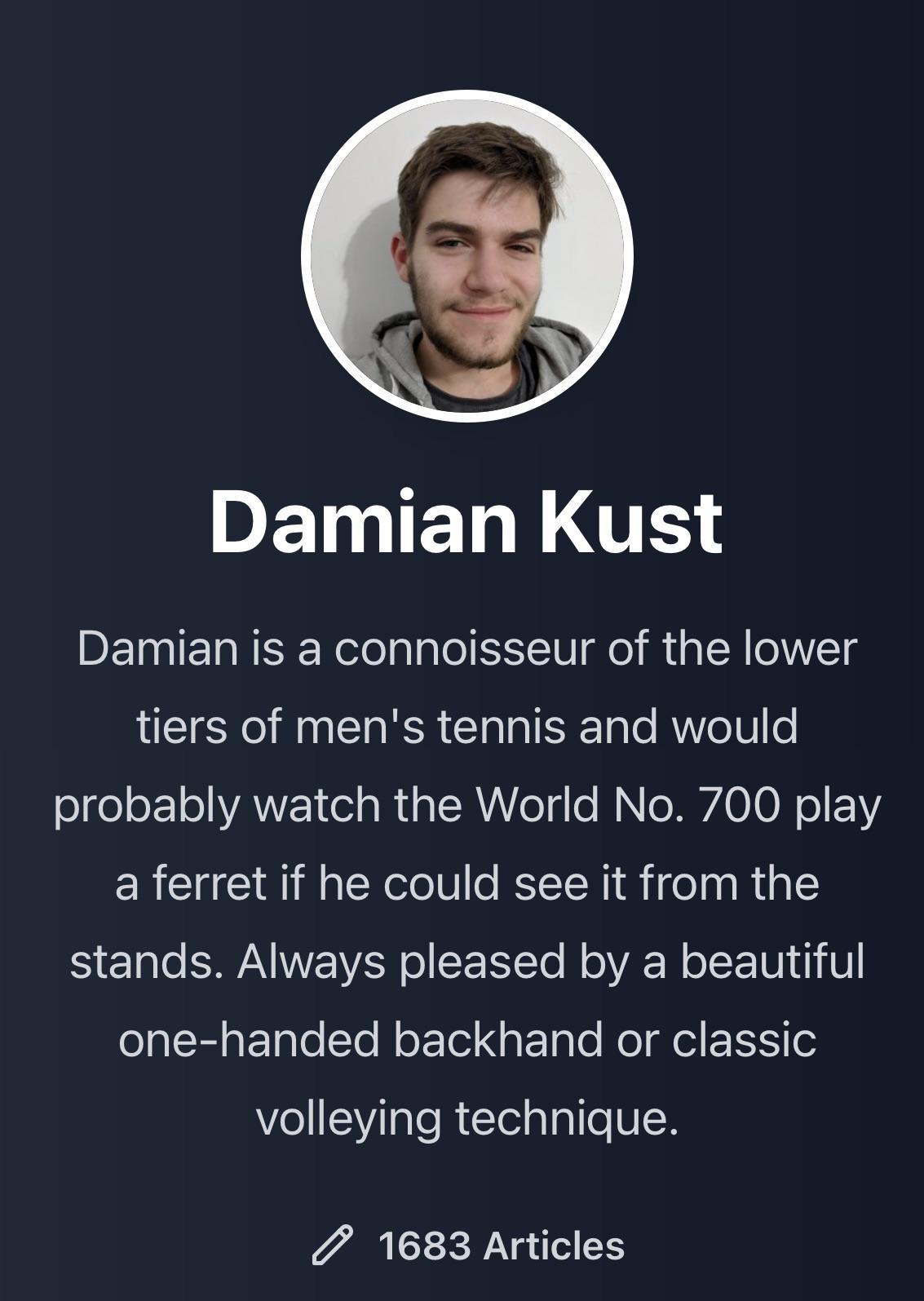 As a highly respected journalist and podcast host, Damian Kust was widely admired within the tennis community for his warmth and professionalism. His long-term dedication and relentless focus on the ATP Challenger Tour earned him the respect of coaches and players alike. This often-overlooked circuit is the cradle where future stars develop. Kust’s deep understanding of tennis and sincere curiosity shone through every match he covered. It was through his words that those striving players finally gained recognition and visibility.