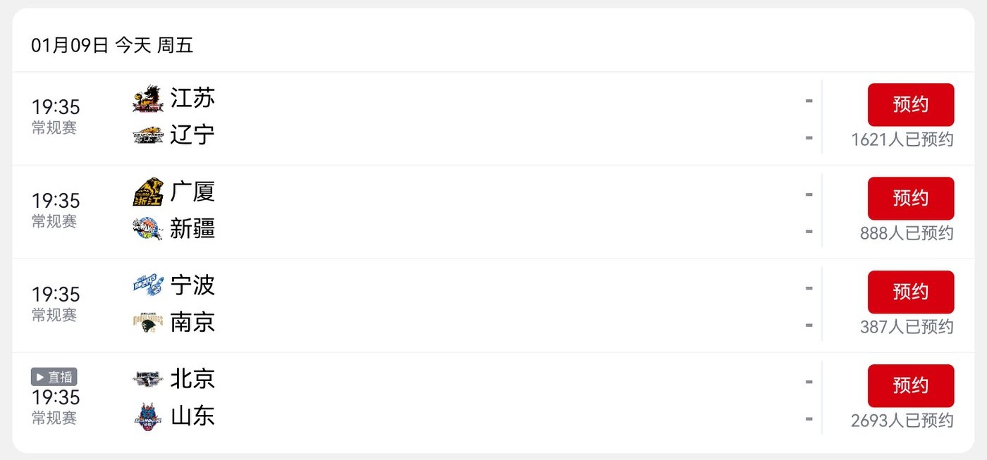 CBA schedule today (2026.1.9): Beijing Beiqi VS Shenzhen Marco Polo, live on CCTV-5.