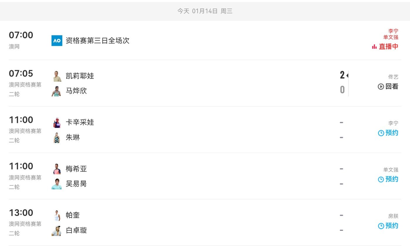 The second round of the Australian Open qualifiers takes place today (1.14), with four Chinese players competing, live on Migu Video.