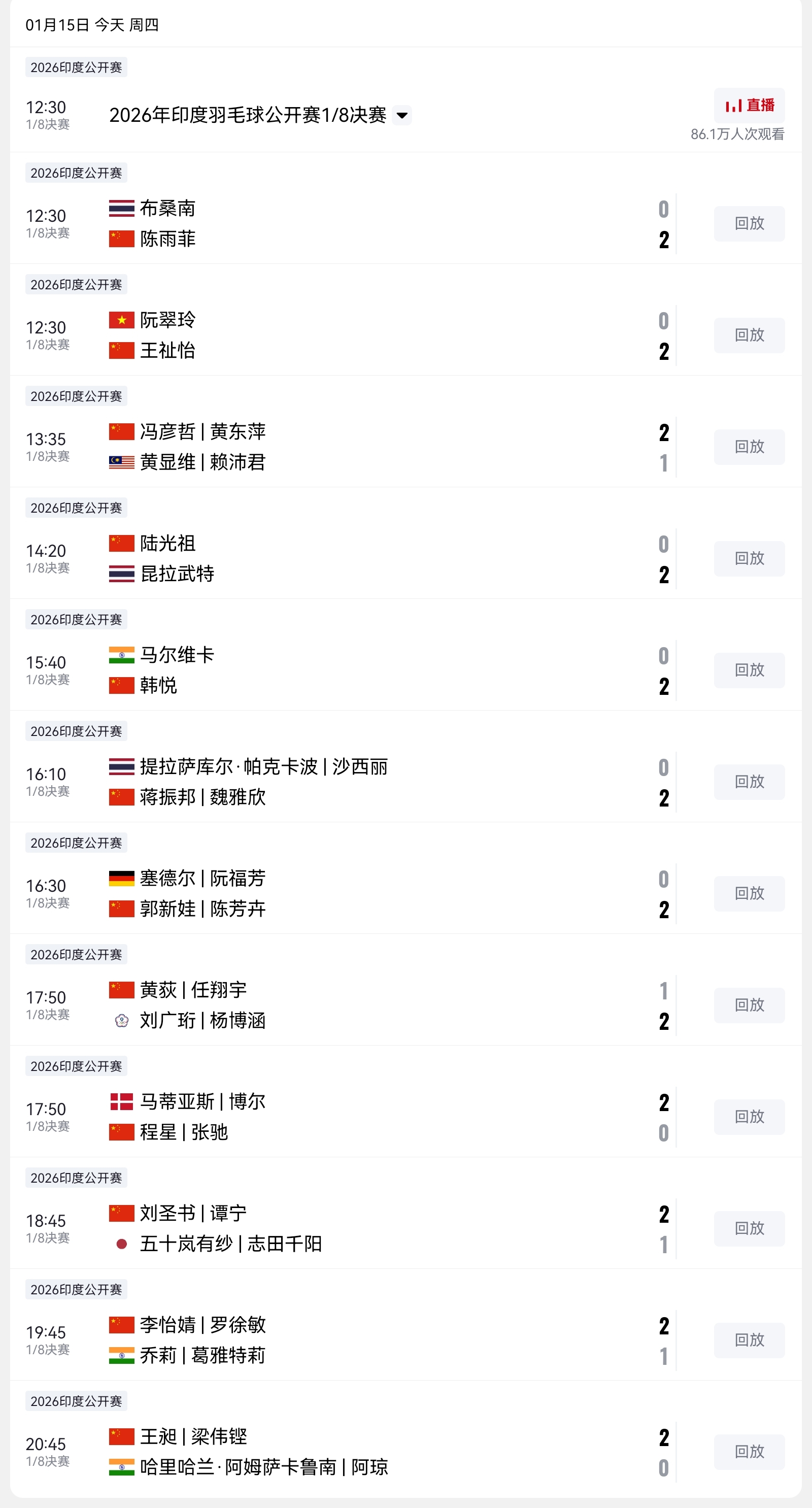 Latest update from the India Open Badminton Tournament: China has 9 wins and 3 losses; Lu Guangzu loses, and all men's singles players are eliminated.