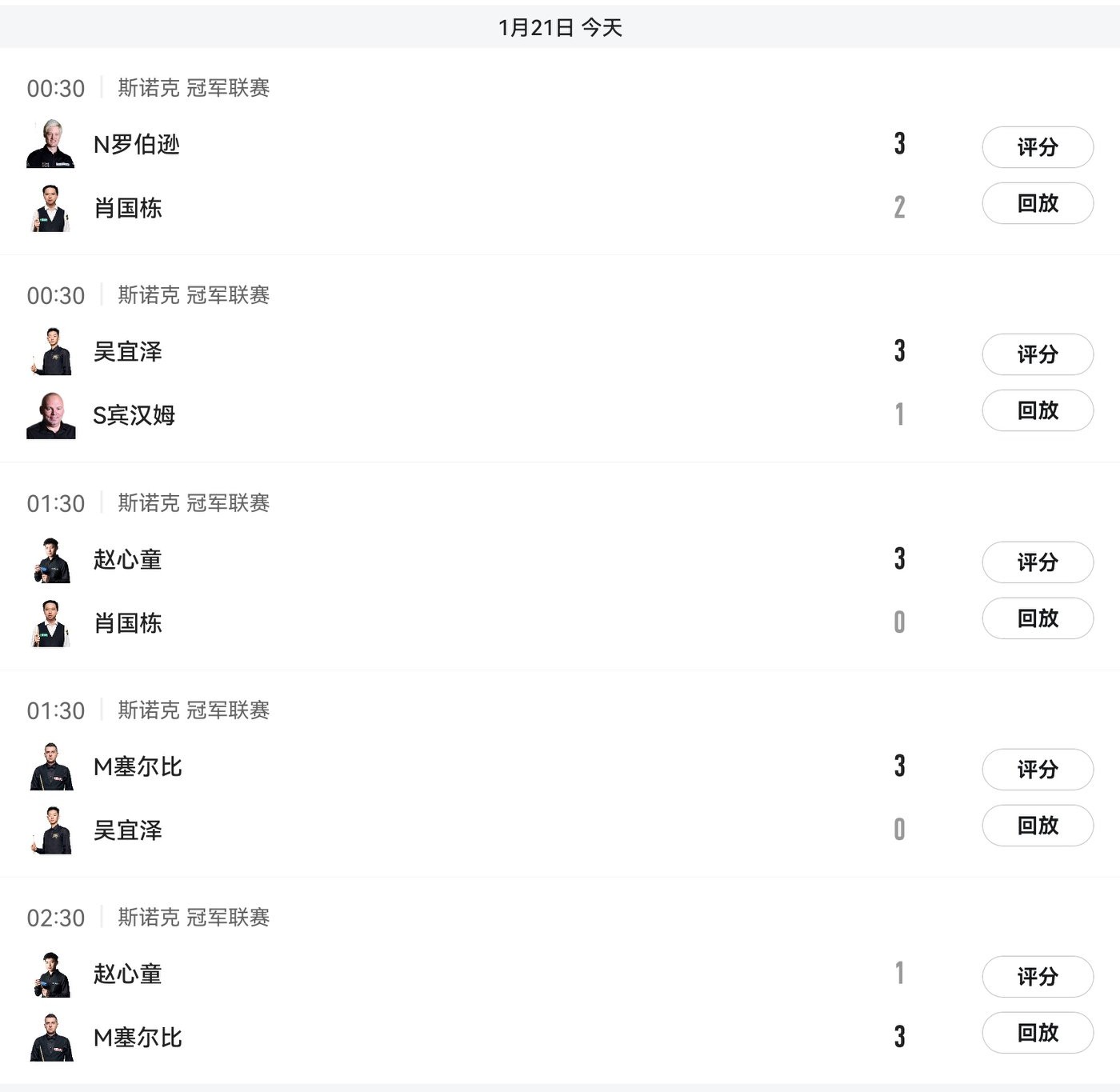 The Snooker Champions League’s latest update shows Group 5 matches have all finished, with Zhao Xintong taking second place, and Wu Yize and Xiao Guodong making it into the top four.