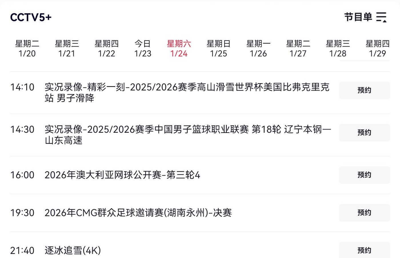 The detailed broadcast schedule for CCTV-5 and Yangshipin is shown in the image below.