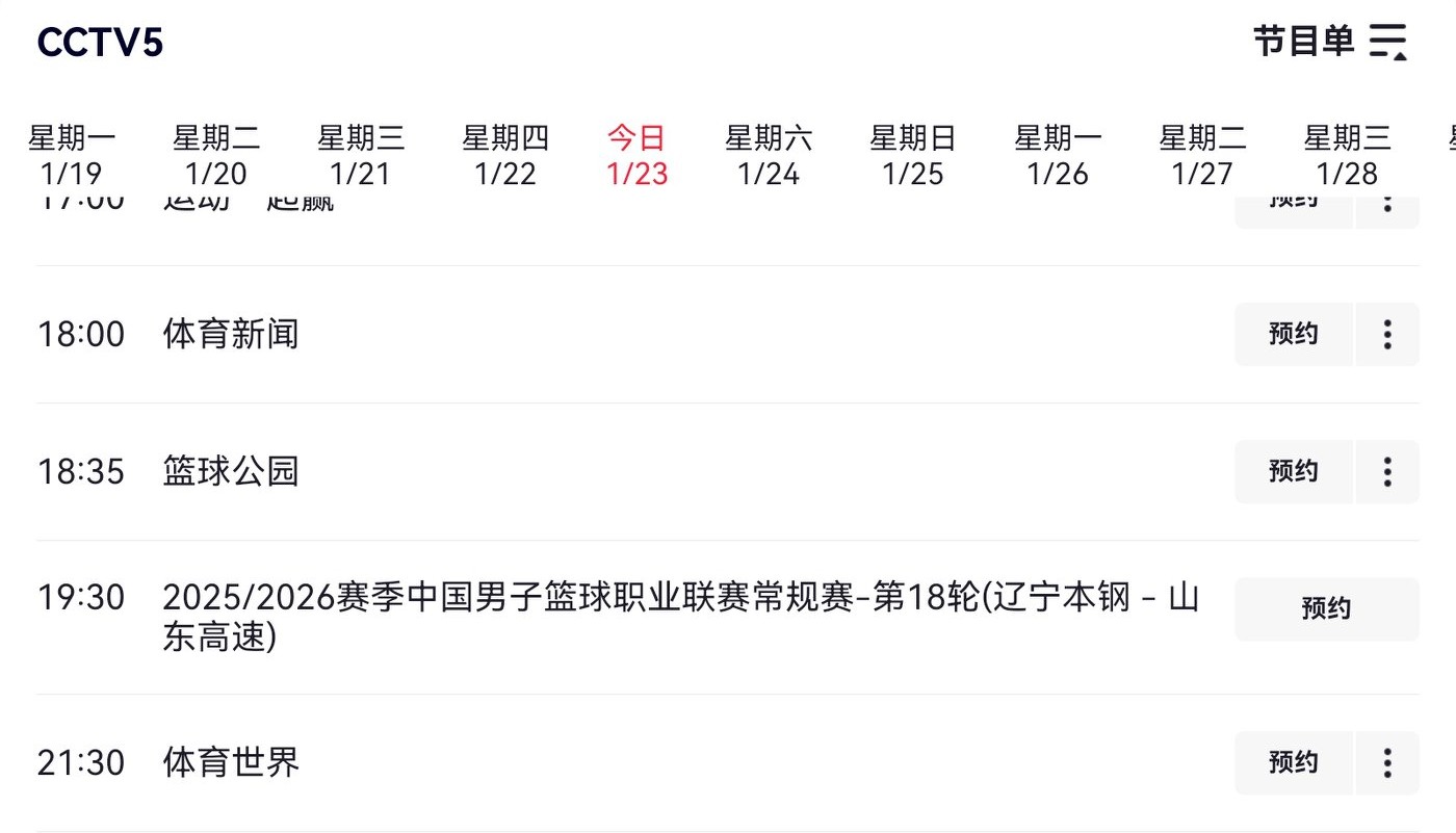 CBA schedule today (2026.1.23): Liaoning Bengang VS Shandong Gaosu, live on CCTV-5 and Yangshipin.