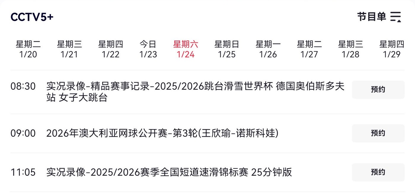 Tomorrow’s (2026.1.24) third round of the Australian Open features Wang Xinyu versus Noskova, live on CCTV-5+ and the official streaming platform.