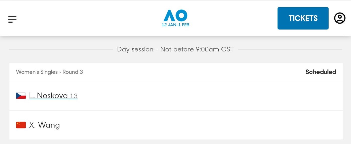 As per the official Australian Open schedule, Wang Xinyu will play against Noskova no earlier than 9 a.m. tomorrow (2026.1.24).