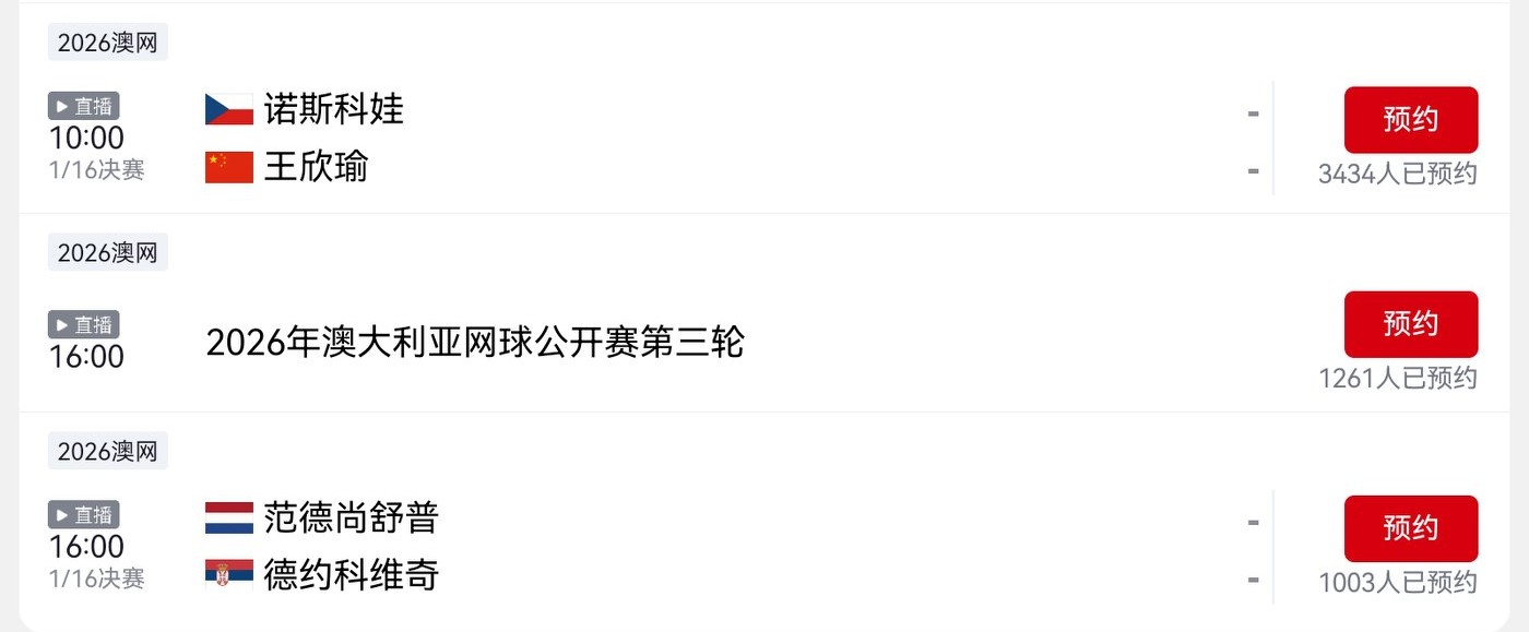 At 10 AM today (January 24, 2026), Wang Xinyu will play against Noskova, live on CCTV-5+.