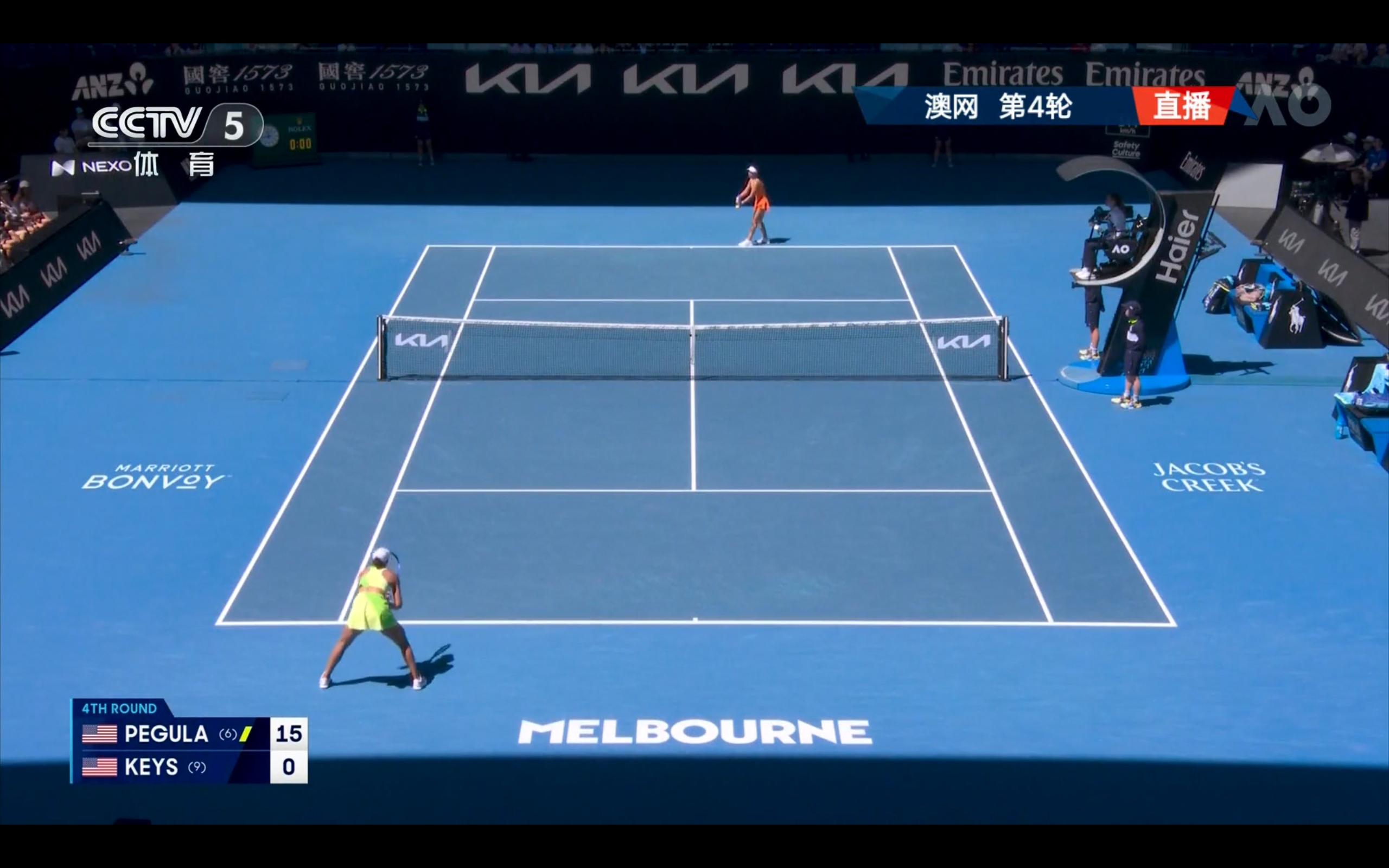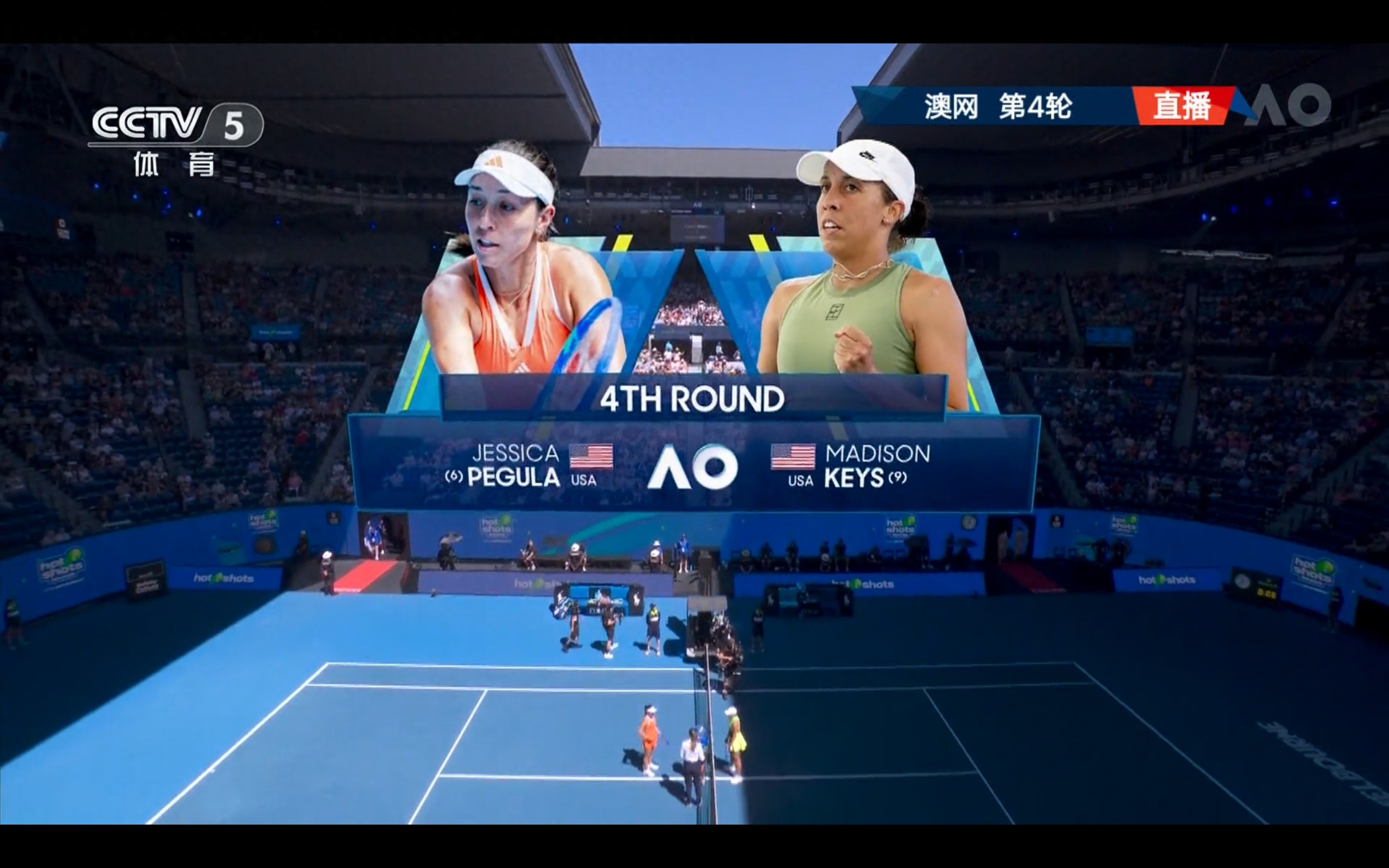 CCTV-5 and Yangshipin are streaming the Australian Open women's singles round of 16 match between Pegula and Keys for free.